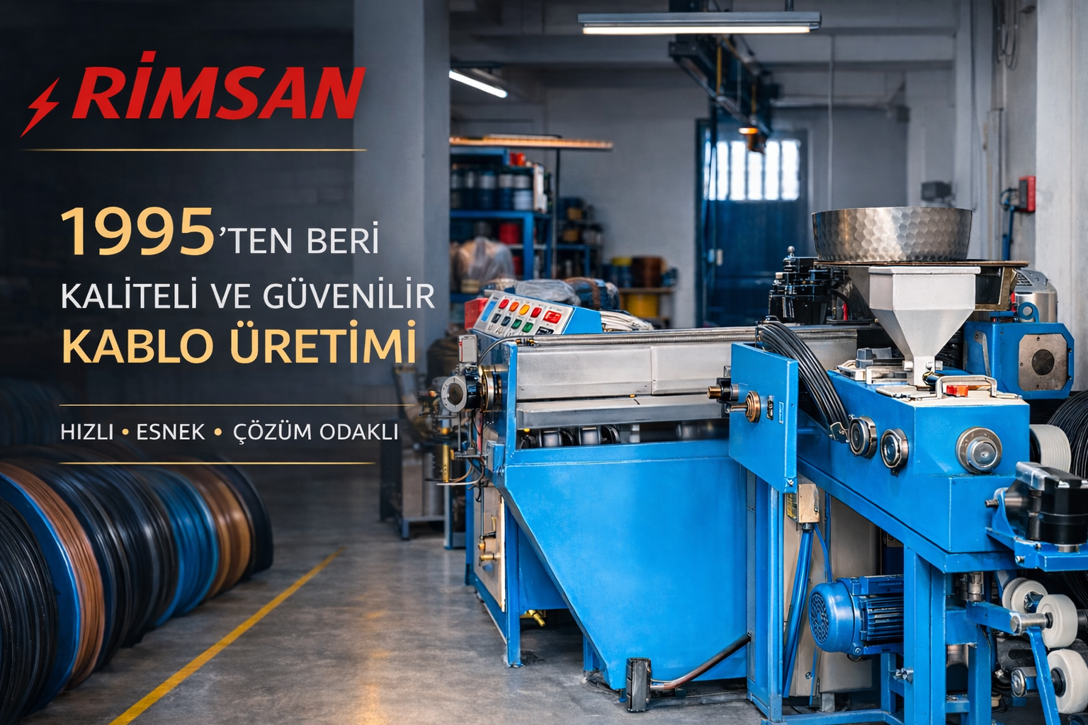 1995 yılında İstanbul’da kurulan Rimsan Kablo, elektrik kabloları ve kablo çözümleri alanında faaliyet gösteren bir aile şirketidir. Kurulduğu günden bu yana üretim tecrübesini sürekli geliştirerek elektrik sektörüne güvenilir ve kaliteli ürünler sunmayı hedeflemektedir. Rimsan Kablo olarak elektrik kabloları, fişli kablolar ve farklı sektörlerin ihtiyaçlarına yönelik özel üretim kablo çeşitleri üretmekteyiz. Üretim süreçlerimiz hem seri üretime hem de müşterilerimizin taleplerine göre özel sipariş üretimine uygun şekilde planlanmaktadır. Elektrik, elektronik, aydınlatma ve plastik enjeksiyon sektörleri başta olmak üzere birçok alanda faaliyet gösteren firmalara çözüm sunmaktayız. Elektrik malzemesi toptancıları, sanayi firmaları, makine üreticileri ve perakende satış noktaları ile kurduğumuz iş birlikleri sayesinde sektörde geniş bir müşteri ağına sahibiz. Uzun yıllara dayanan üretim tecrübemiz, hızlı ve esnek üretim kabiliyetimiz, güvenilir tedarik anlayışımız ve titiz kalite kontrol süreçlerimiz ile müşterilerimize sürdürülebilir ve güvenilir çözümler sunmaya devam ediyoruz.